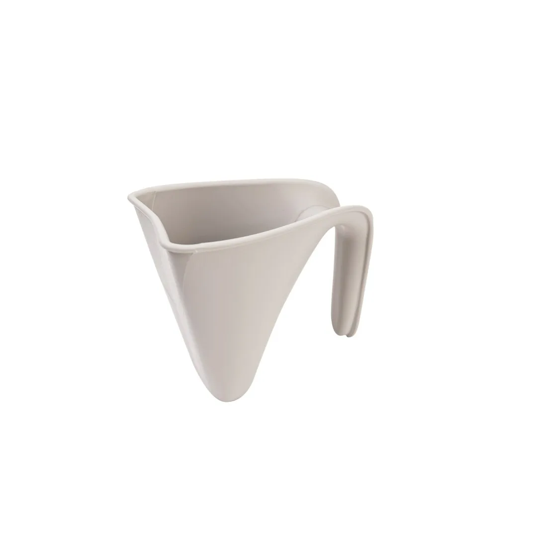 O jarro de banho foi desenhado para encostar gentilmente à cabeça do bebé, de modo a impedir que a água escorra para os seus olhinhos.